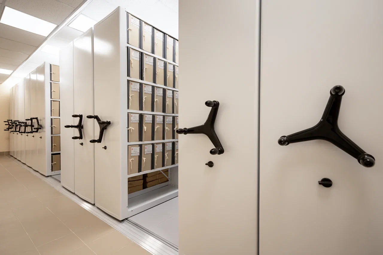Помимо этого, значимыми преимуществами архивных перекатных стеллажей являются: возможность их быстрого перемещения практически независимо от веса, а также возможность использования конструкции в составе автоматизированного склада.