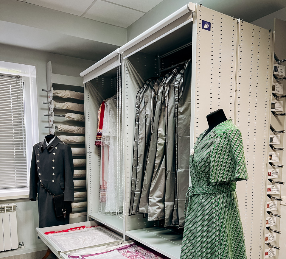 Изготовим передвижные стеллажи для хранения одежды на складе или в фондах музея с доставкой с завода производителя в города Нижегородской области и России.