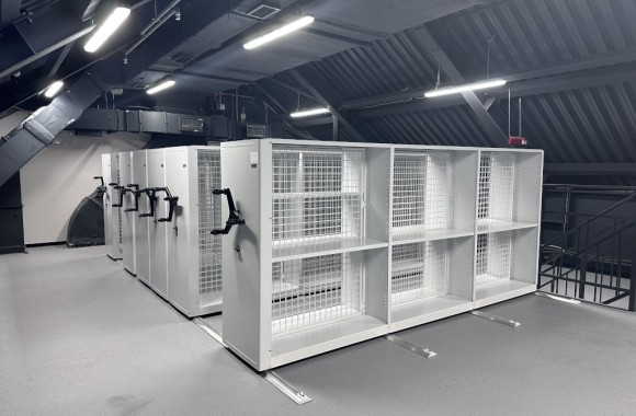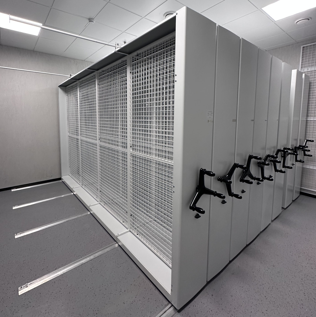 Мобильные стеллажи с сетками - это удобная и эргономичная рельсовая система вертикального хранения картин и других фондов в хранилище музея, направленная на сохранность художественных ценностей и эффективное использование площади хранилища.
